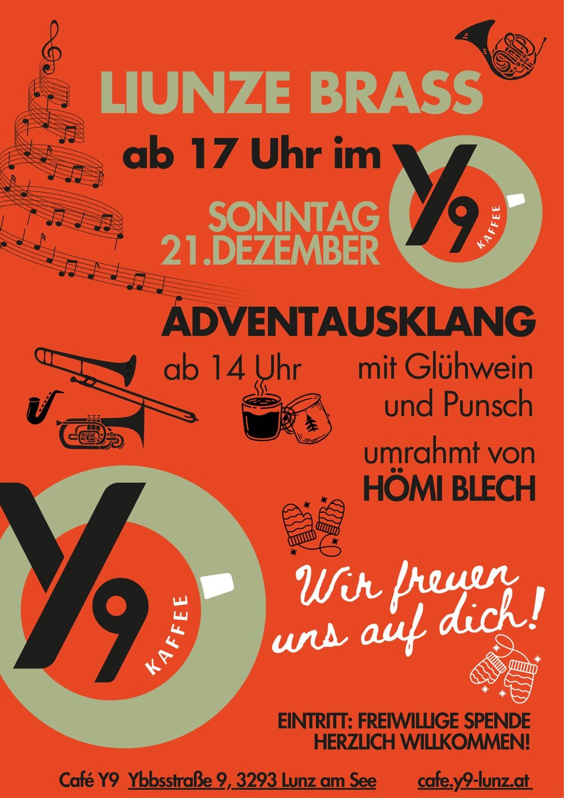 Beginn der Veranstaltung ist um 17:00, ab ca. 18:00 werden wir Weihnachtslieder spielen und Euch Zeit & Temparaturen mit Punsch verschönern.